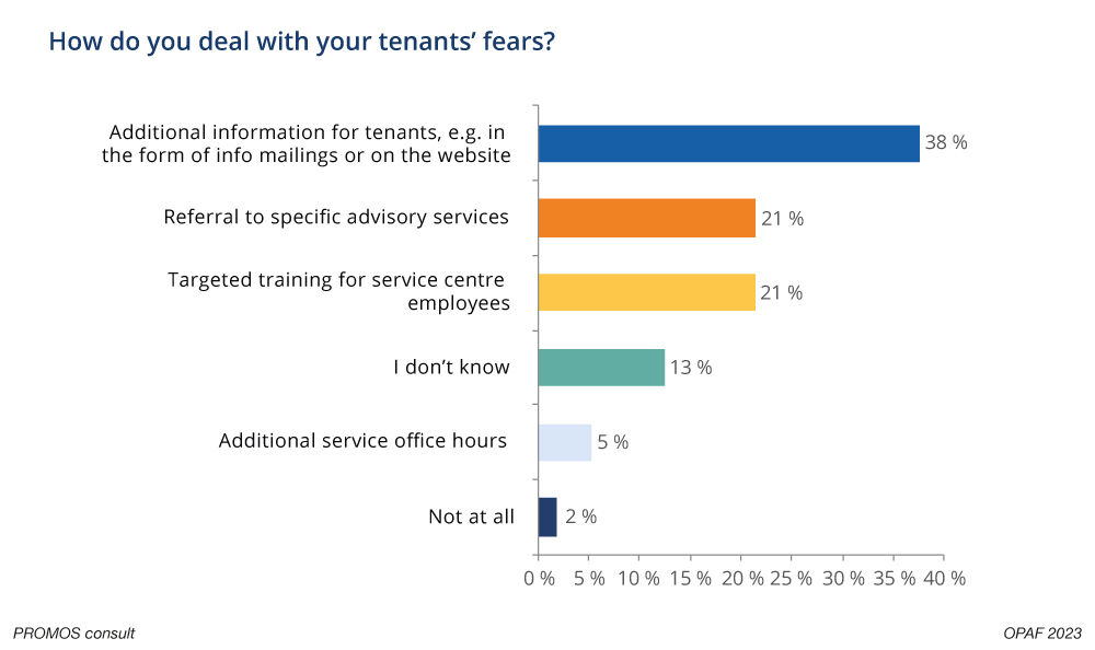 Rising inflation, increasing rents, energy prices – these are all topics that our tenants are currently facing. Uncertainty is high, while the buffer in the bank account at the end of each month gets smaller. German housing companies are feeling this, too. 35 percent of respondents among visitors to the OPUF stated that they are seeing increasing service requests from their tenants due to anxiety and financial difficulties. The industry is by no means ignoring this fact. In addition to targeted training for service centre employees, according to 38 percent of respondents, tenants are provided with additional information or referred to special advisory services (21 percent). Companies that use the tenant app in particular can implement these and similar communicative measures without much additional effort. The app allows information to be dispersed at short notice. Equally, tenants can place enquiries with great ease using the tenant app.