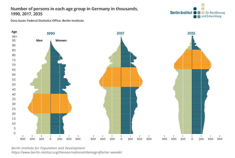 With around 23 percent of responses, the audience at our 16th OpenPromos User Forum views demographic change and the associated shortage of skilled workers as the greatest challenge, ahead of the trend in energy prices (22 percent) and the climate crisis (18 percent). This is hardly surprising, really. After all, it’s probably the topic that most affects employees in their everyday working environment, when too much work falls to too few people. Or when projects cannot be implemented, or only with delays, because there simply isn’t anyone available to run them. And what we’re currently seeing is just the tip of the iceberg. In just a few years, the “baby boomers” born in the 1960s will all have retired, as the development of the German population pyramid in Figure 2 shows. Our panel discussion on this topic considered solutions to the problem. Apart from offering better wages and a four-day work week as incentives, the most prominent idea was digital process optimisation. Personalised work interfaces, such as that offered by SAP Fiori®, or the personalised work basket from easysquare workflow not only allow new employees to get acquainted with the system faster but also contribute to a reduced daily workload. In the same way, all solutions from the area of process optimisation and automation offer potential to release valuable experts who can then work productively in another area.