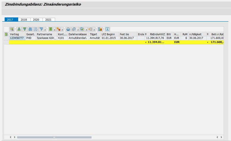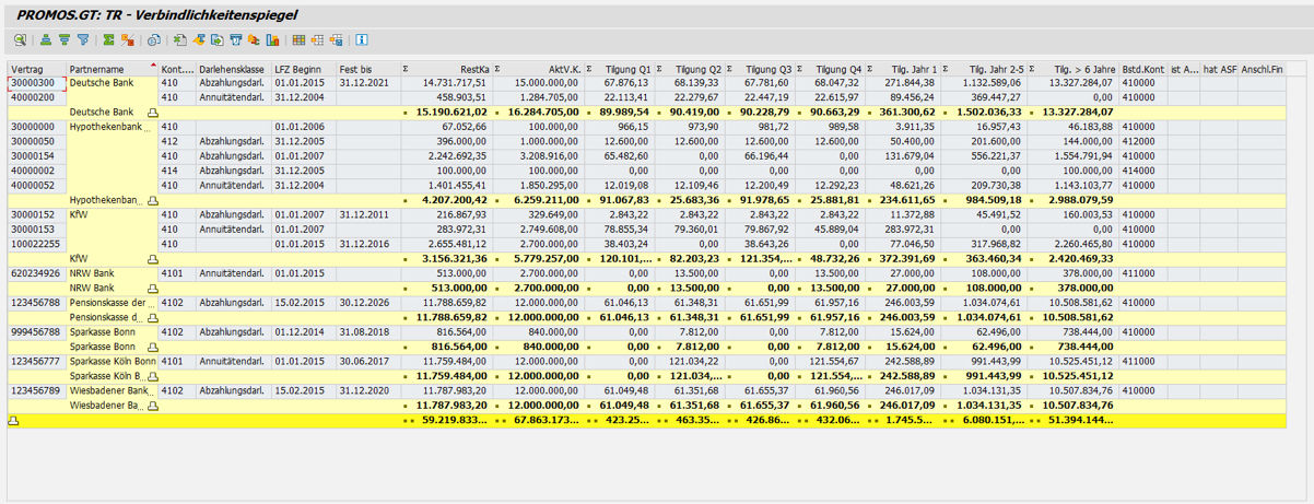 The PROMOS repricing balance sheet is used to determine future liquidity risks or interest rate risks from the current loan stock. Here, you can determine the need for action in time slices based on the contractually agreed deadlines.