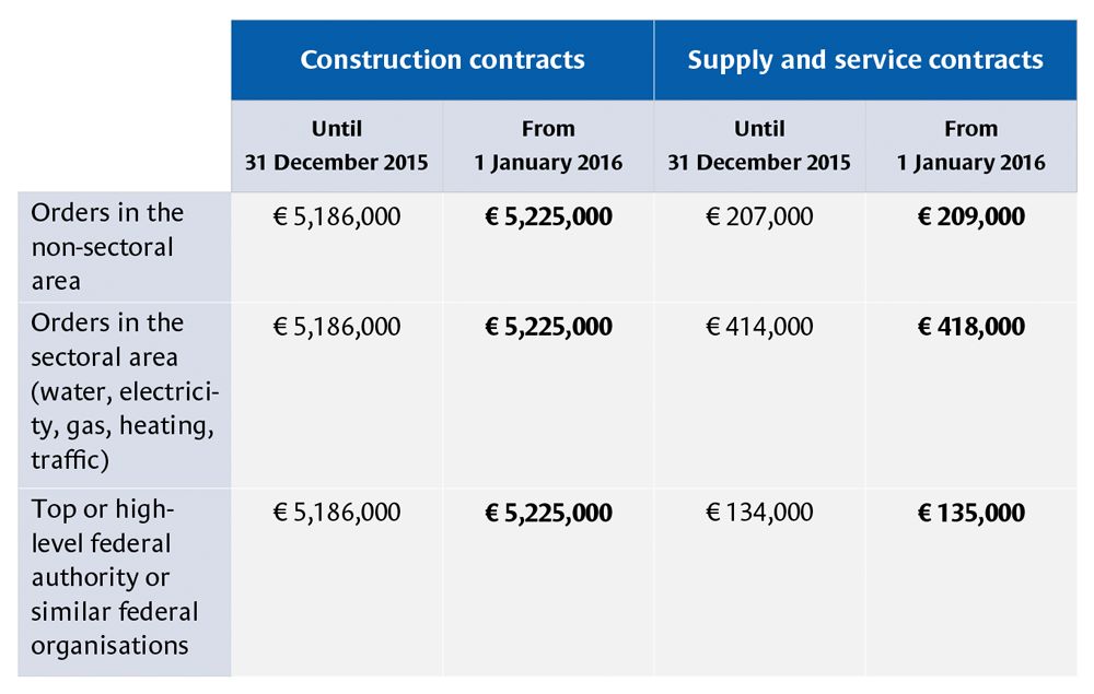 ![]() Figure 1: There are new thresholds in the European Union for awarding public orders.1 |