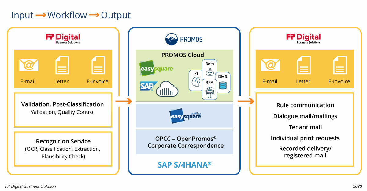 FP Digital Business Solutions GmbH has been supporting its customers with transforming their corporate communications into a digital format for over 20 years. The Brandenburg company adapts its customers’ specific requirements, which range from handling individual services such as digital signatures to implementing integrated or tailor-made digital input and output management strategies. FP Digital Business Solutions provides integrated, smart, mail processing services through state-of-the-art technology at its various branches in Germany.