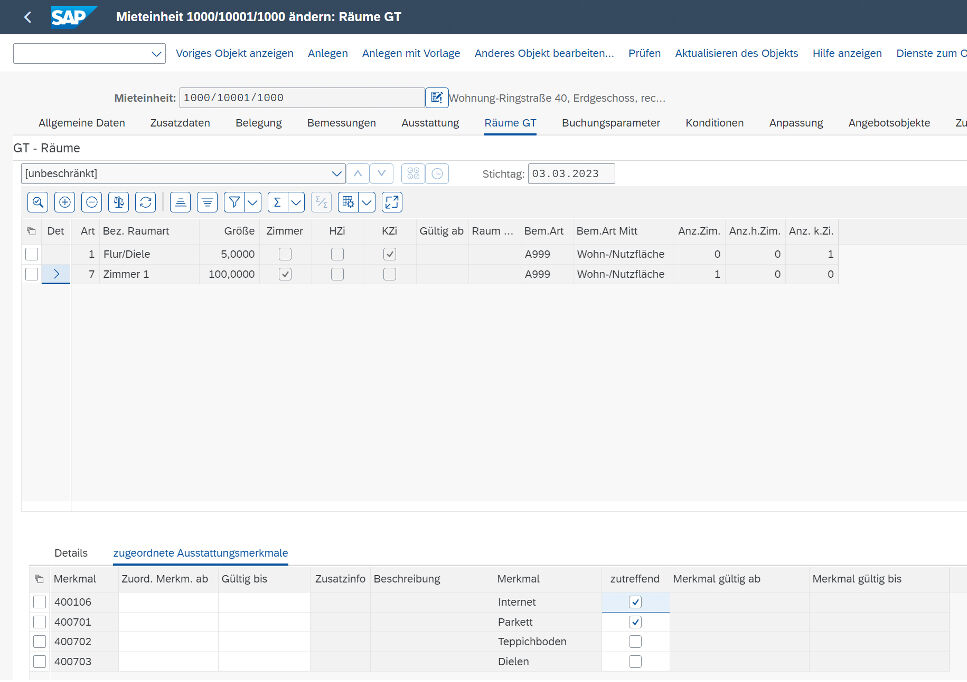 With the room administration functions, you can maintain the fixtures and fittings characteristics of your object master data in the standard SAP® real estate management scope. In this context, PROMOS has developed a useful enhancement that you can use to allocate rooms and fittings and fixtures in detail. In this way, you can determine which fixtures are available in the room in question on an individual basis.