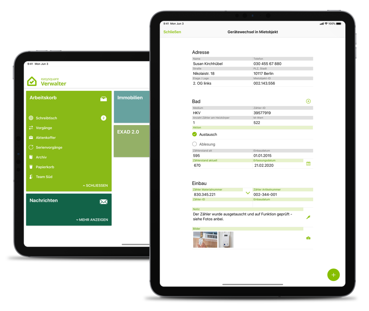 ![]() The mobile data entry for device changeover in the easysquare app on site, including integration into the housing company’s ERP system, is fast, efficient and seamless. |