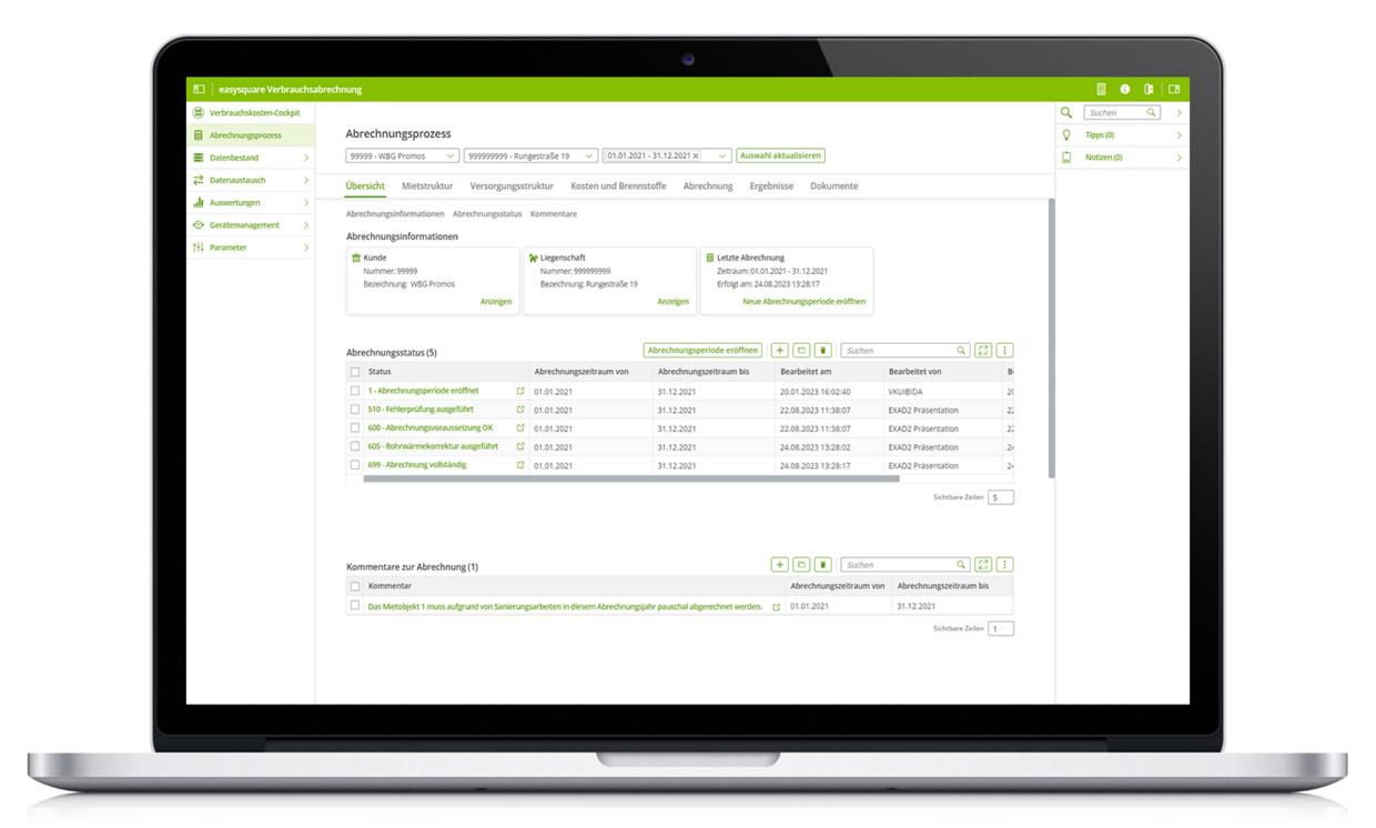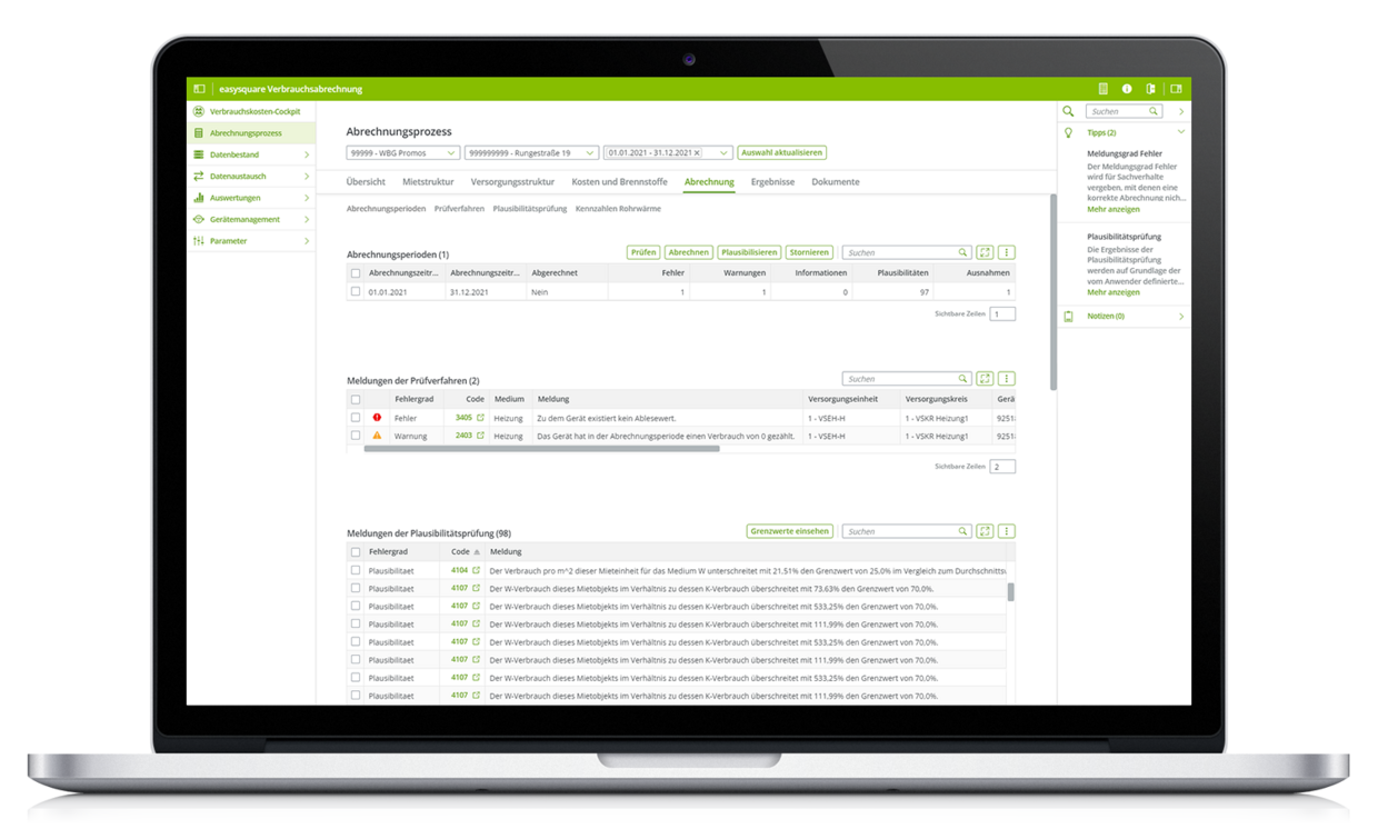 Legal compliance: The easysquare solution ensures billing in accordance with HKVO and VDI 2077.