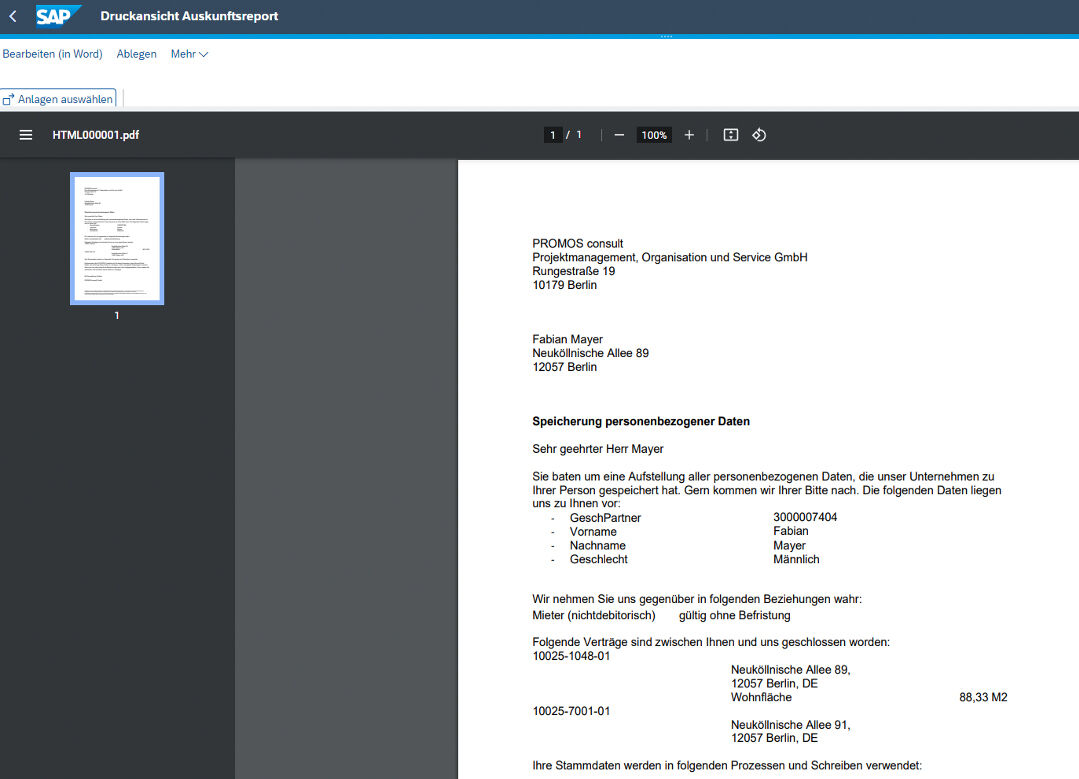 Specifically for this purpose, PROMOS offers a solution package consisting of helpful reports that support companies in the legally compliant handling of personal data of business partners in SAP®. These include an anonymisation report and an information report for business partner data. The basis is a well thought-out deletion and blocking concept that regulates the processing of personal data in your company, for example when a data record must be deleted or anonymised. This can be dependent on statutory retention periods or due to open business processes.
