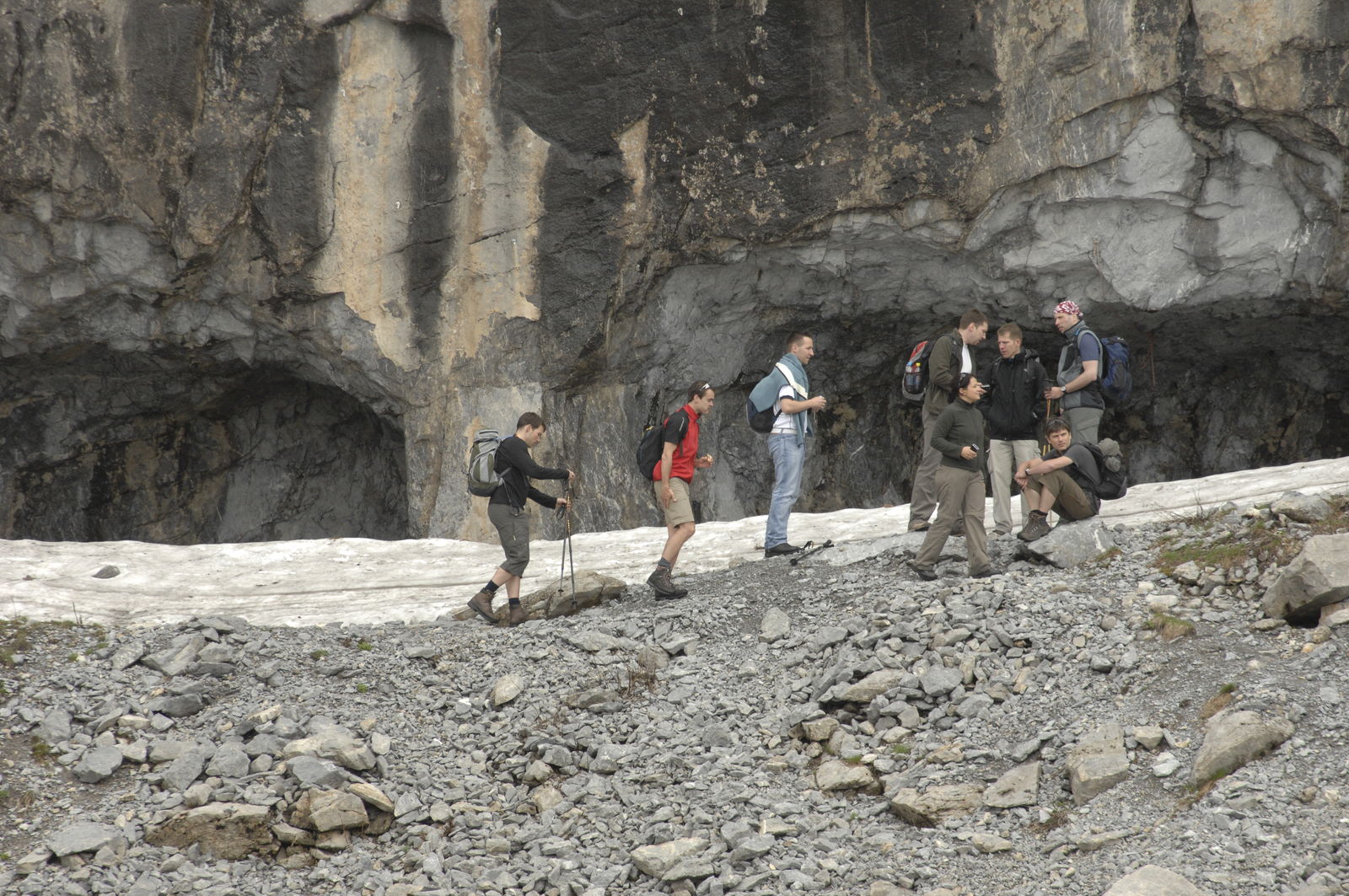 ![]() Wer raufkommt, muss auch runterkommen. Auf krummen Pfaden bahnen sich die PROMOS Bergsteiger ihren Weg ins Tal.  |