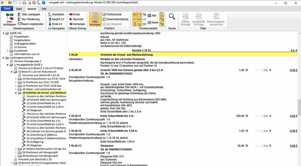 Import von GAEB-Dateien in 3 Schritten. Schritt 1: Ausgangsdatei im Viewer von wingaeb.