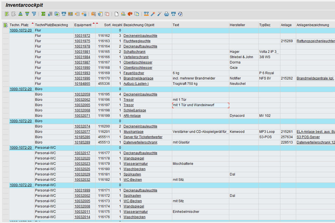 With the PROMOS Inventory Cockpit, we provide you with an overview within your SAP® system that makes it considerably easier to manage your equipment on a piece by piece basis – even over several locations or branches. The cockpit includes an ALV list from which you can select all the relevant processing functions in SAP®, such as performing mass maintenance tasks or adding new equipment to the inventory.