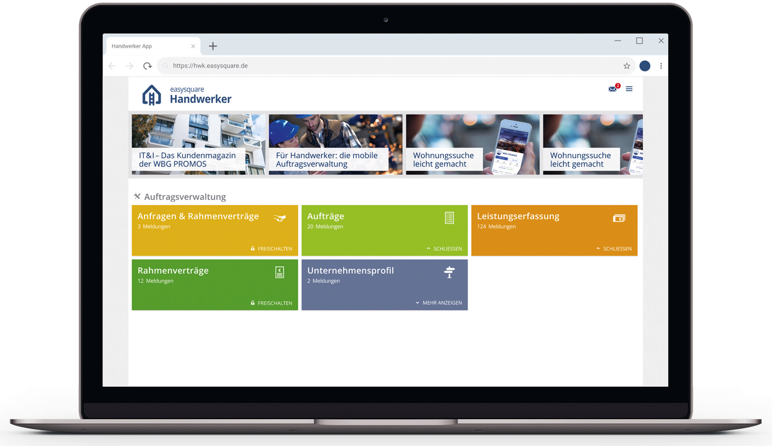Transparency: The craftsmen portal provides an overview of all offered and awarded orders with comprehensive status information for monitoring purposes.