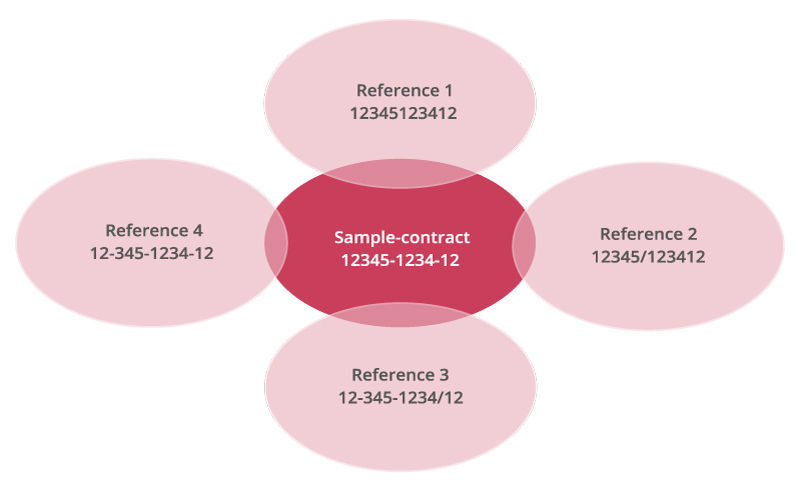 ![]() Pattern search transforms unstructured contract numbers into the structure specified by the system. |