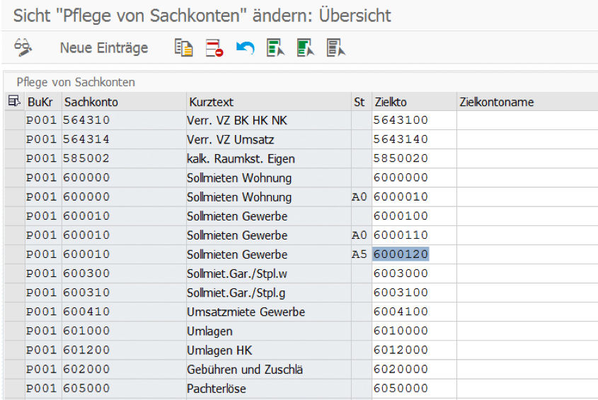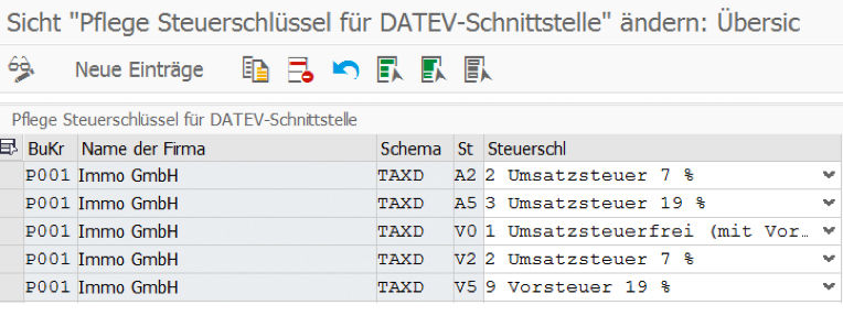 ![]() Example of a mapping table for G/L accounts taking into account the tax code  |
