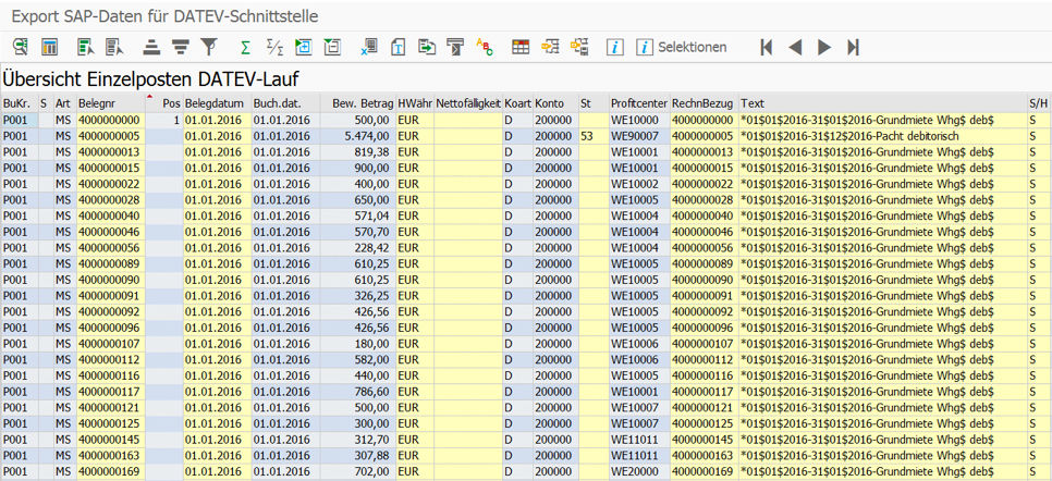 ![]() File with an overview of the postings generated for an export to DATEV  |