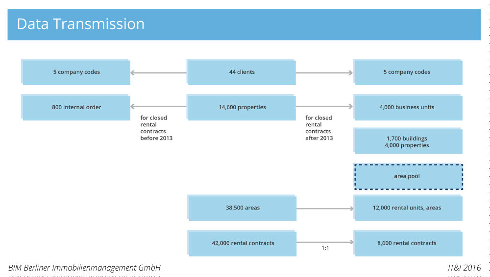 During the data migration, the data from Liegenschaftsfonds first had to be structured in a way that made importing it into the BIM system possible. The LFB database contained a total of around 14,600 properties, of which some were duplicates and units that had already been sold but had remained in the system. The data thus needed to be reduced before the migration to the new system, in particular because the buildings and plots of land had not been entered individually but as higher-level properties. The project team managed to aggregate the data to a significant degree and summarise the properties into around 4,000 business units. The project team was then able to begin transferring the first test data at the beginning of November.