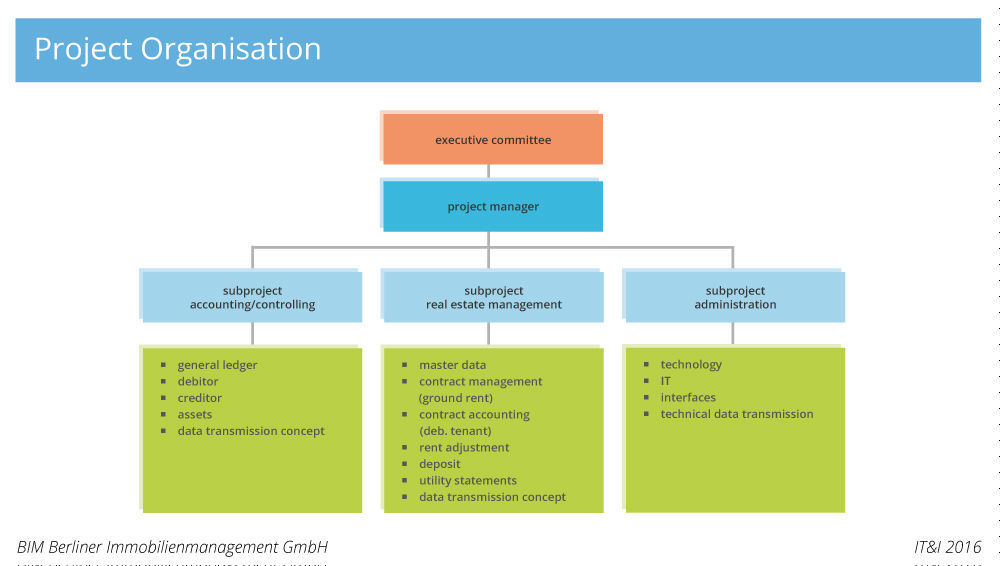 Until now, Liegenschaftsfonds was responsible for selling real-estate and land belonging to the federal state of Berlin, which was not required for operations. However, instead of selling these properties, the federal state of Berlin has now decided to increasingly keep them in its portfolio, as it plans to use the real estate to pursue an active urban development policy. Thus, at the beginning of 2015, based on a decision of the senate, Liegenschaftsfonds merged with the BIM GmbH, which is also a federal state company. BIM leases and sells federal state-owned real estate and also secures plots of land for the growing city to use for its own purposes.