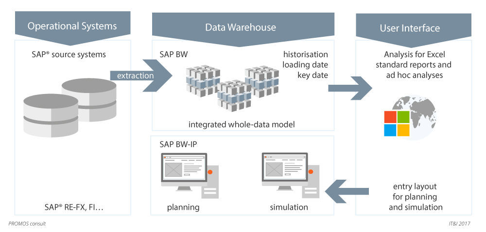 Figure 2: Architecture of the “Plato” solution: realisation on the basis of SAP BW and its integrated planning (SAP® BW-IP) as well as the Excel-based frontend tool SAP (Analysis for Excel).