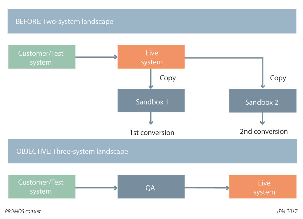 ![]() Figure 1: Migration sequence from a two-system landscape to a three-system landscape.  |