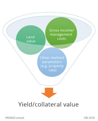 The PROMOS collateral value calculation specifically follows the principle of the German income approach, as this is what banks use – as previously described – to determine the collateral value of leased-out properties.