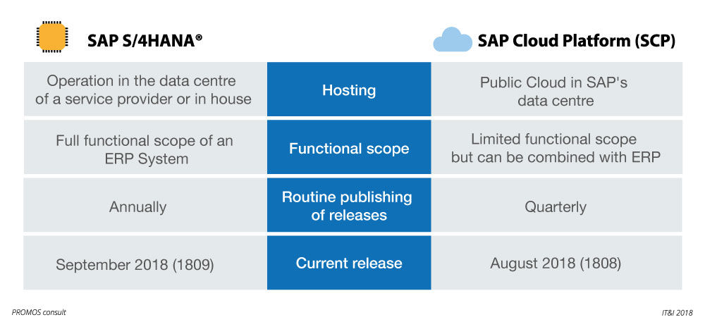 ![]() Figure 1: Comparison of the products SAP S/4HANA® and SAP Cloud Platform (SCP). |