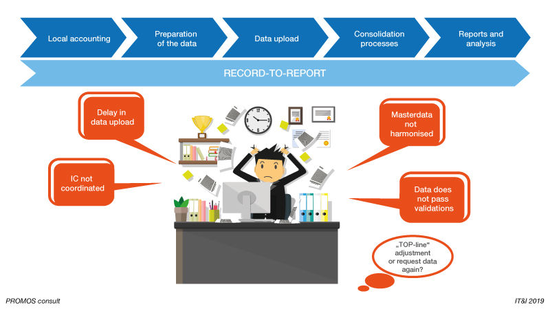 A traditional record-to-report process encompasses all activities involved in creating a financial report at the end of a respective period. From local bookkeeping and preparing and uploading data all the way to the classic consolidation processes, numerous individual steps must be ticked off before the report can actually be created and analysed. Information from the bank accounts, main ledgers and sub-ledgers must first be processed, then analysed and potentially readjusted, meaning that these processes can easily end up taking several days. If a company assembles an annual report only once a year, then this effort may be of little consequence, making the report a relatively low-pressure undertaking. As soon as companies begin creating financial statements on a quarterly or even monthly basis, however, employees must regularly deal with higher work and stress levels leading up to the respective reporting date.