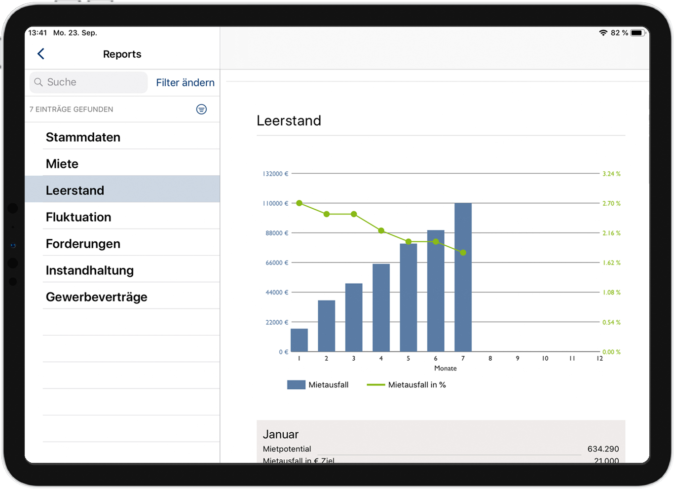 ![]() The integration of reporting services into the professional app is a sensible addition for real estate owners and investors. Not only important key performance indicators, but also information on the portfolio can be conveniently called in the app. |