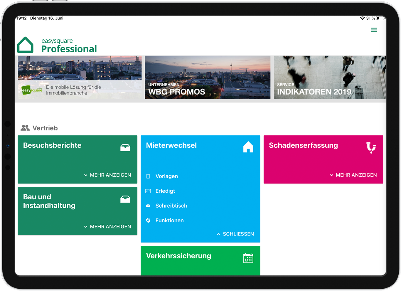 The easysquare professional app simplifies everyday work for real estate employees thanks to the digitisation of important work processes, connection to SAP® and intuitive, user-friendly design.
