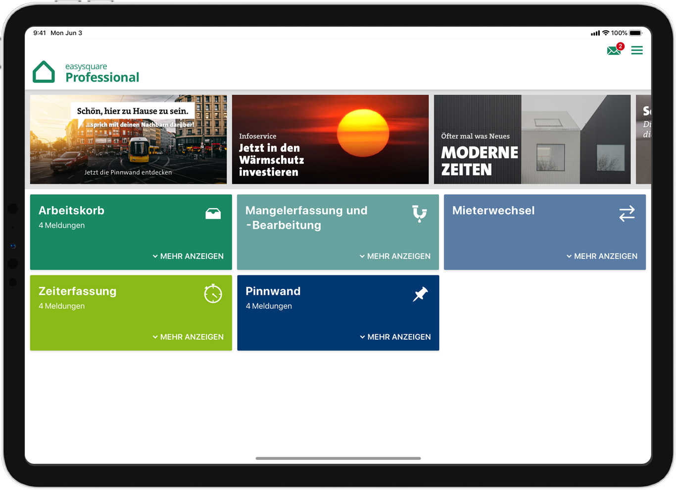 ![]() The integration of reporting services into the professional app is a sensible addition for real estate owners and investors. Not only important key performance indicators, but also information on the portfolio can be conveniently called in the app. |