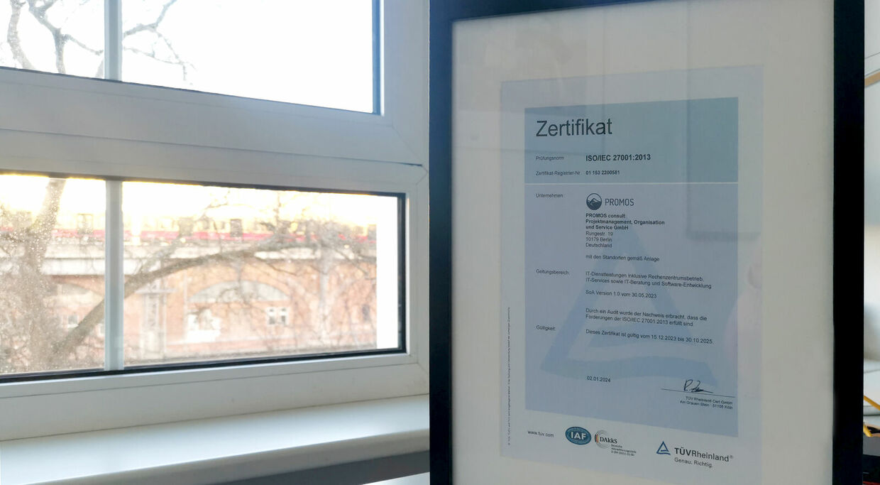 Successful ISO/EN 27001:2013 certification for Berlin-based IT consultancy PROMOS consult – a promising start to the new year