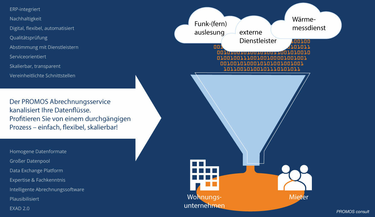 Right now, data from energy suppliers still has to be entered manually into the ERP system and then transferred digitally to the meter reading companies or even entered manually in their online portals. All this requires a lot of manual effort. Thanks to our new invoicing service and our EXAD solution, these manual steps will be a thing of the past. The whole billing process is standardised and automated through the integrated processing of harmonised data. EXAD also seamlessly connects to your SAP® system so that billing can be controlled directly from the ERP application, i.e., from the Utilities Cockpit (NKPU), almost like an add-on. Dirk Krause, utility costs specialist at PROMOS consult, supports the new service, “With this invoicing service, we are revolutionising billing processes for utility costs. It is cost saving, process efficient and flexible. No matter what other legal changes you have to deal with in the future, with this solution, you are equipped for all eventualities. What makes this solution unique is that you save a lot of money (per invoice) compared to conventional processes. Whether you use these cost savings for further investments or pass them on to your tenants for marketing purposes is your business decision”. You have complete free reign with this PROMOS service.