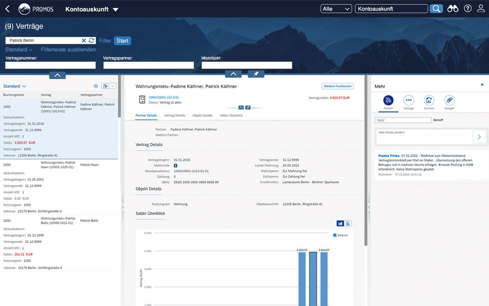 Figure 1: PROMOS.GT ready2 supports companies in the professional and efficient management of their real estate and helps them keep the focus on tenants. One highlight from the area of real estate management is the digital account report for property managers.