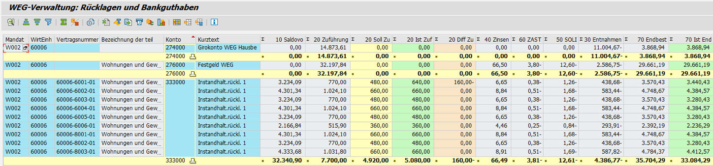 Transparency: On the basis of the reserves grid, the respective target and actual amounts of the reserves can be presented clearly in all correspondence. This can also be done on the basis of condominiums.