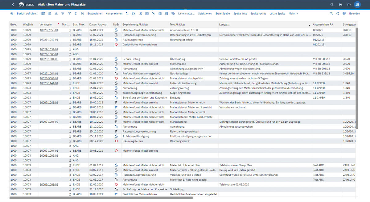 - PROMOS dunning and case record report (Provided that the PROMOS contract account sheet is used with dunning and case record)