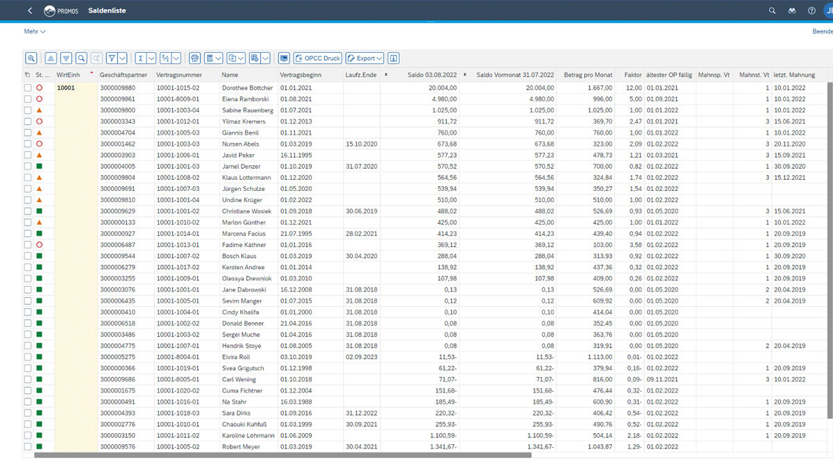 PROMOS Reporting are an optimized addition to the SAP® standard reports. As part of PROMOS.GT, they also contain comprehensive information on other functions in PROMOS.GT, such as the contract account sheet with integrated dunning and case record, the installment payment process and the activities as well as resubmissions.