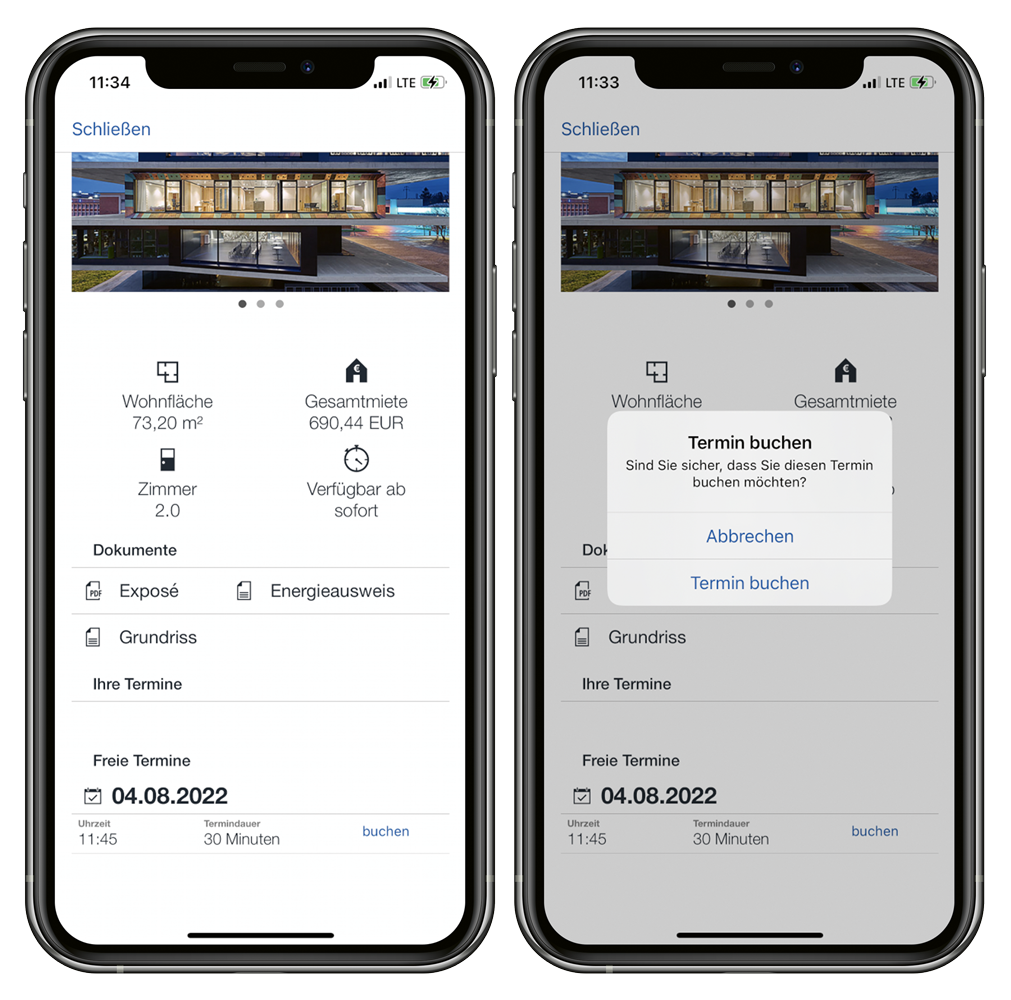 ![]() Property viewings made easy: Potential tenants can book viewing appointments themselves in the app. This significantly reduces the time-consuming coordination of appointments, leaving you time for other tasks. |