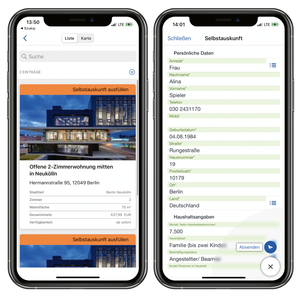 GDPR-compliant data storage: Potential tenants can find all contract-relevant data in the “My data” service, where they can easily enter, edit and manage data themselves. This gives them full control over their data at all times.