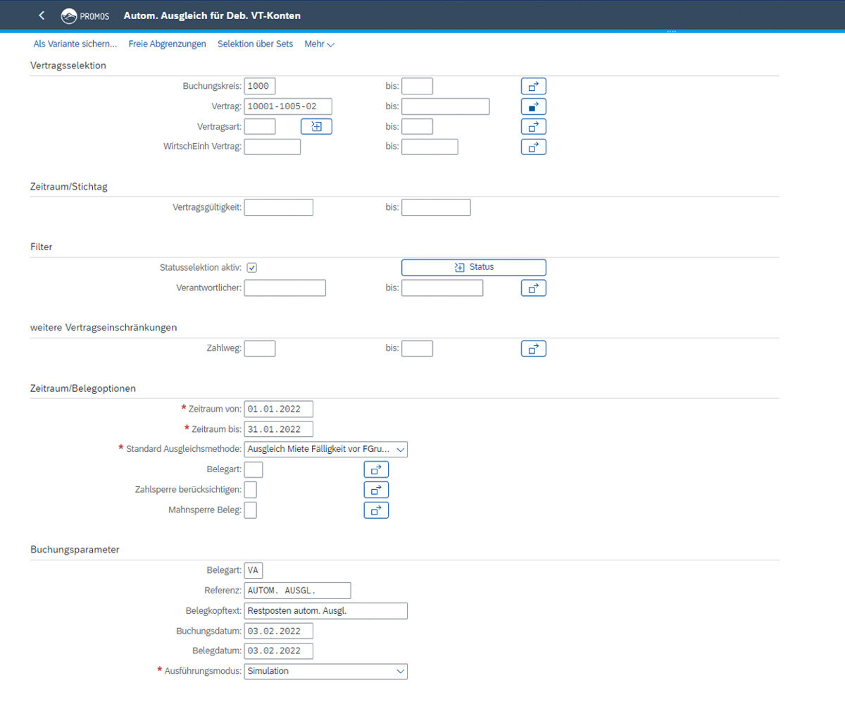 Using the PROMOS OI clearing with residual item creation, it is possible to process this automatically and on a large scale by means of a periodically executed report based on previously defined posting rules.