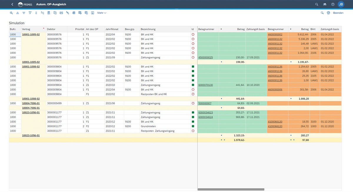 Using the PROMOS OI clearing with residual item creation, it is possible to process this automatically and on a large scale by means of a periodically executed report based on previously defined posting rules.