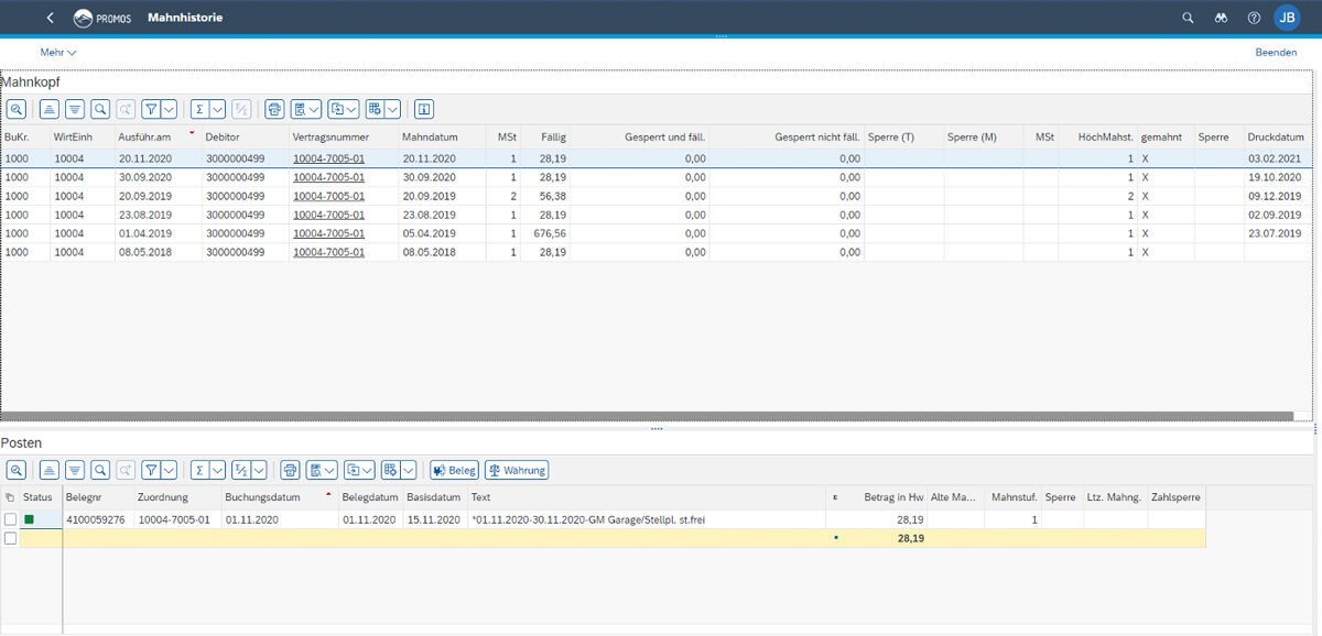 User-independent: The tables and reports in the contract account sheet are not only useful for contract accountants, but are also extremely informative for customer advisors or even the customer himself, for example in the form of a printed balance development to be attached to a tenant’s letter.
