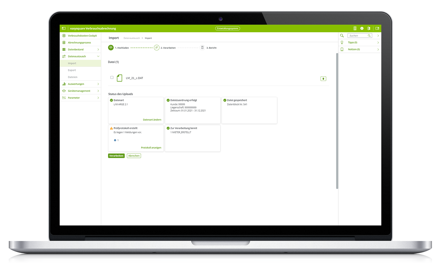 - Data exchange with external applications: So that a property can be billed in EXAD 2.0 as well as in external third-party systems, data exchange via the standardised ARGE exchange format is supported.