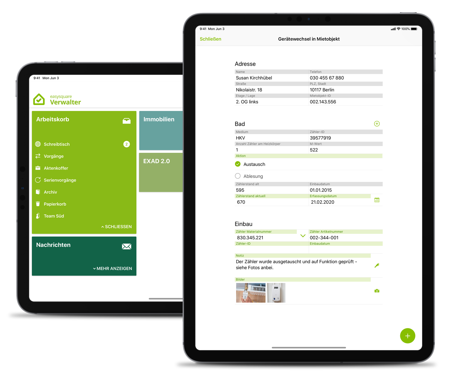 ![]() The mobile data entry for device changeover in the easysquare app on site, including integration into the housing company’s ERP system, is fast, efficient and seamless. |