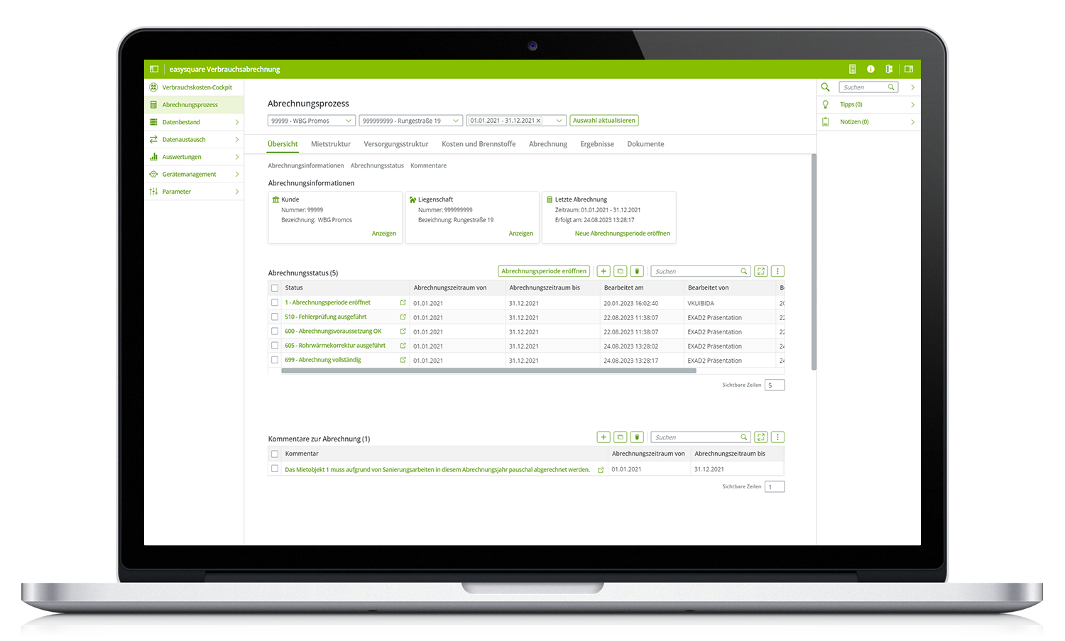 Legal compliance: The easysquare solution ensures billing in accordance with HKVO and VDI 2077.