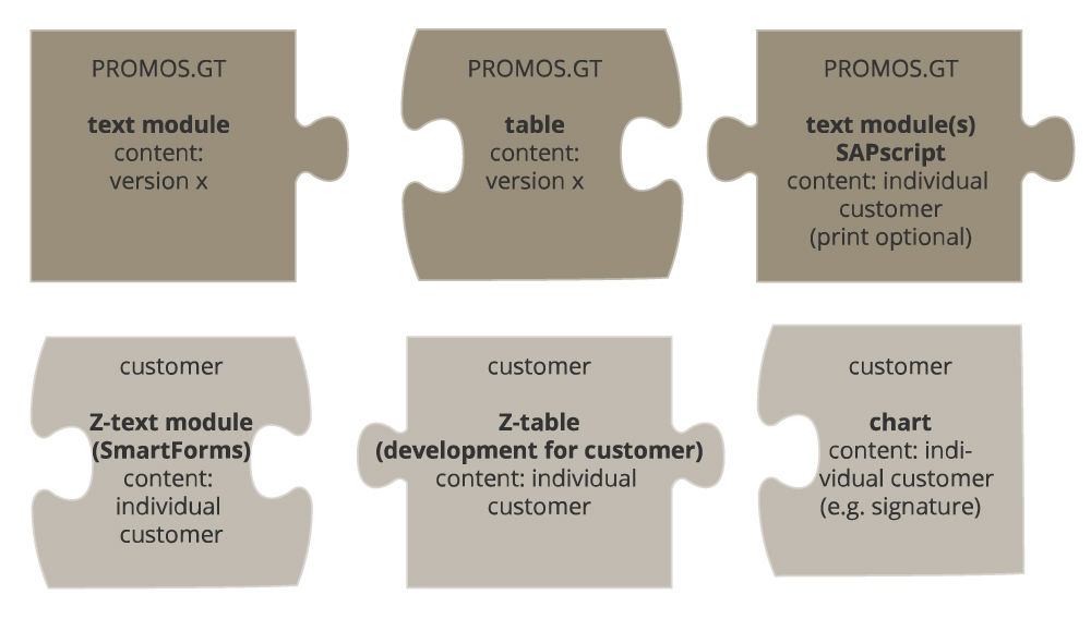Various versions (content, layout) of the texts and tables are available for selection as standard modules in a catalogue. If required, alternative or additional customer-specific modules can also be created and integrated.