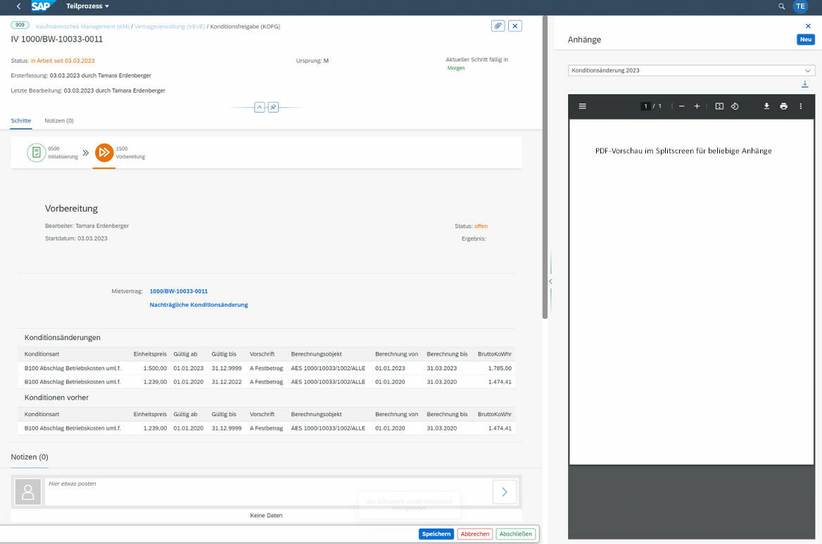 The easysquare release workflow for condition changes is started automatically as soon as contract changes are made that result in a change to the cash flow. In this way, changes can no longer be easily triggered by a single person, but usually go through several authentications, depending on the amount of the condition sum.