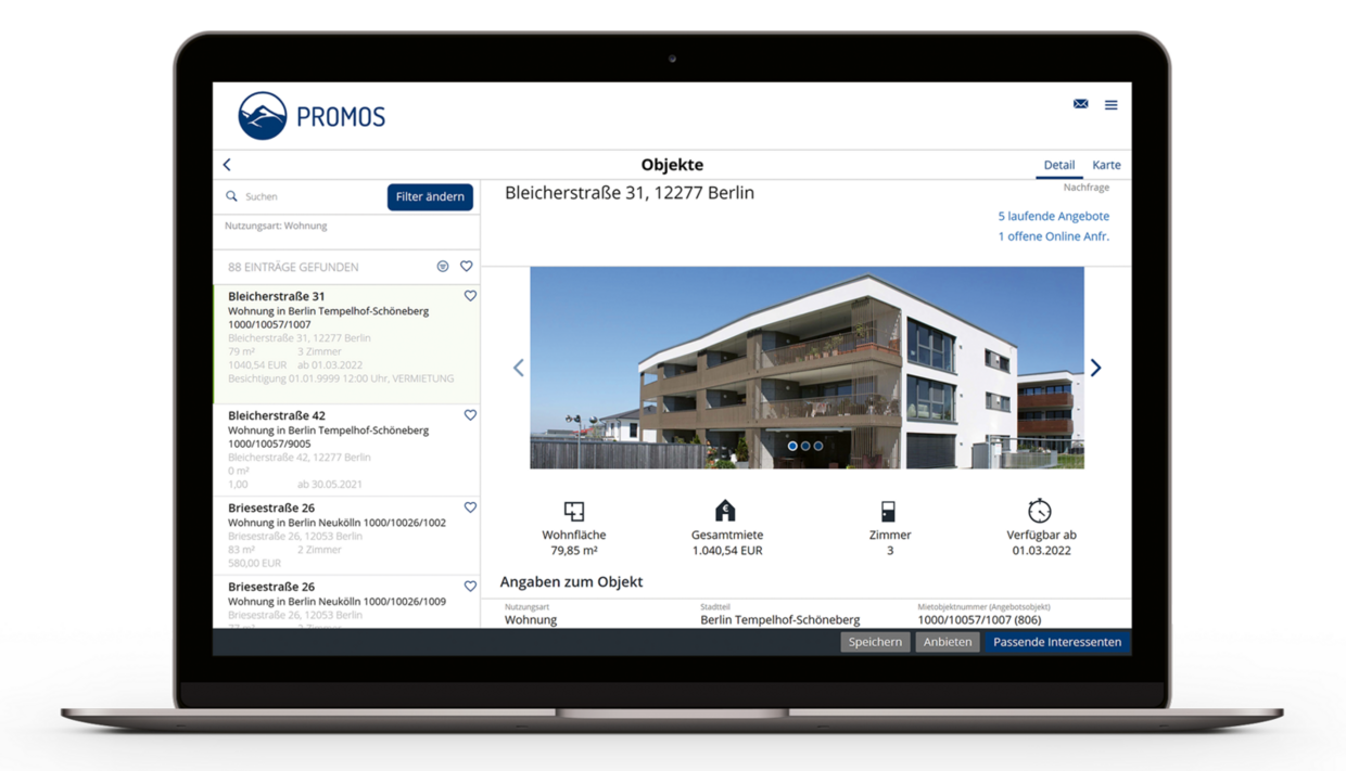 - Commercial rentals: The commercial version takes special requirements into account, such as the economic evaluation of offers and features for working with estate agents.