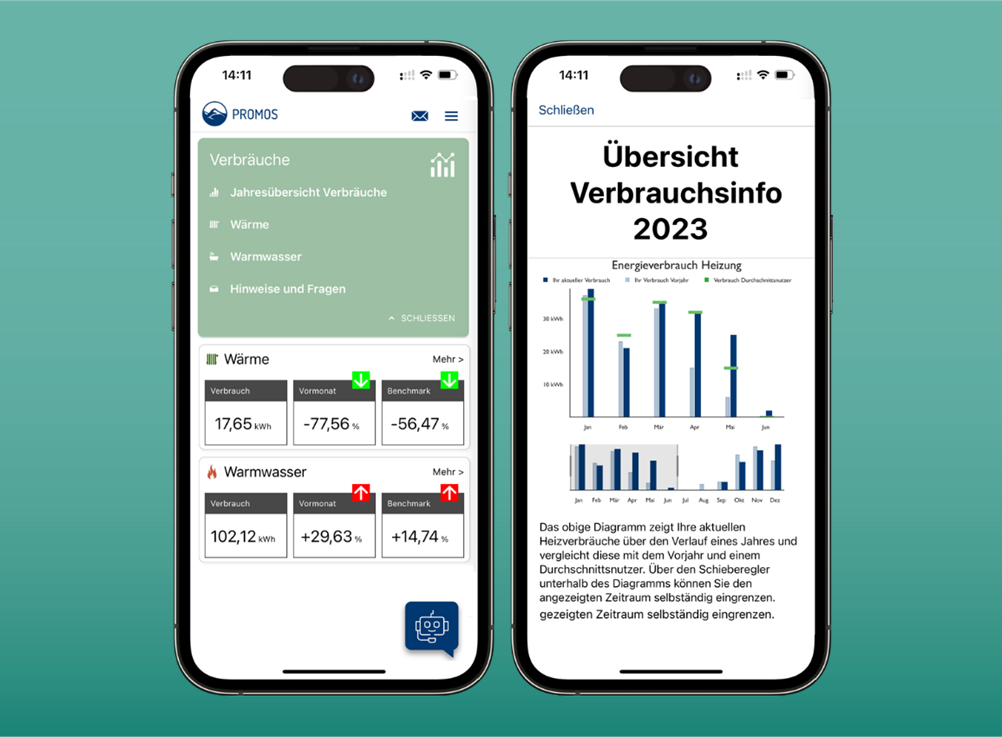 Figure 3: The tenant app can be used to provide consumption information during the year, giving tenants detailed insights into their consumption. If desired, personalised notifications can also be sent to promote conscious energy management.